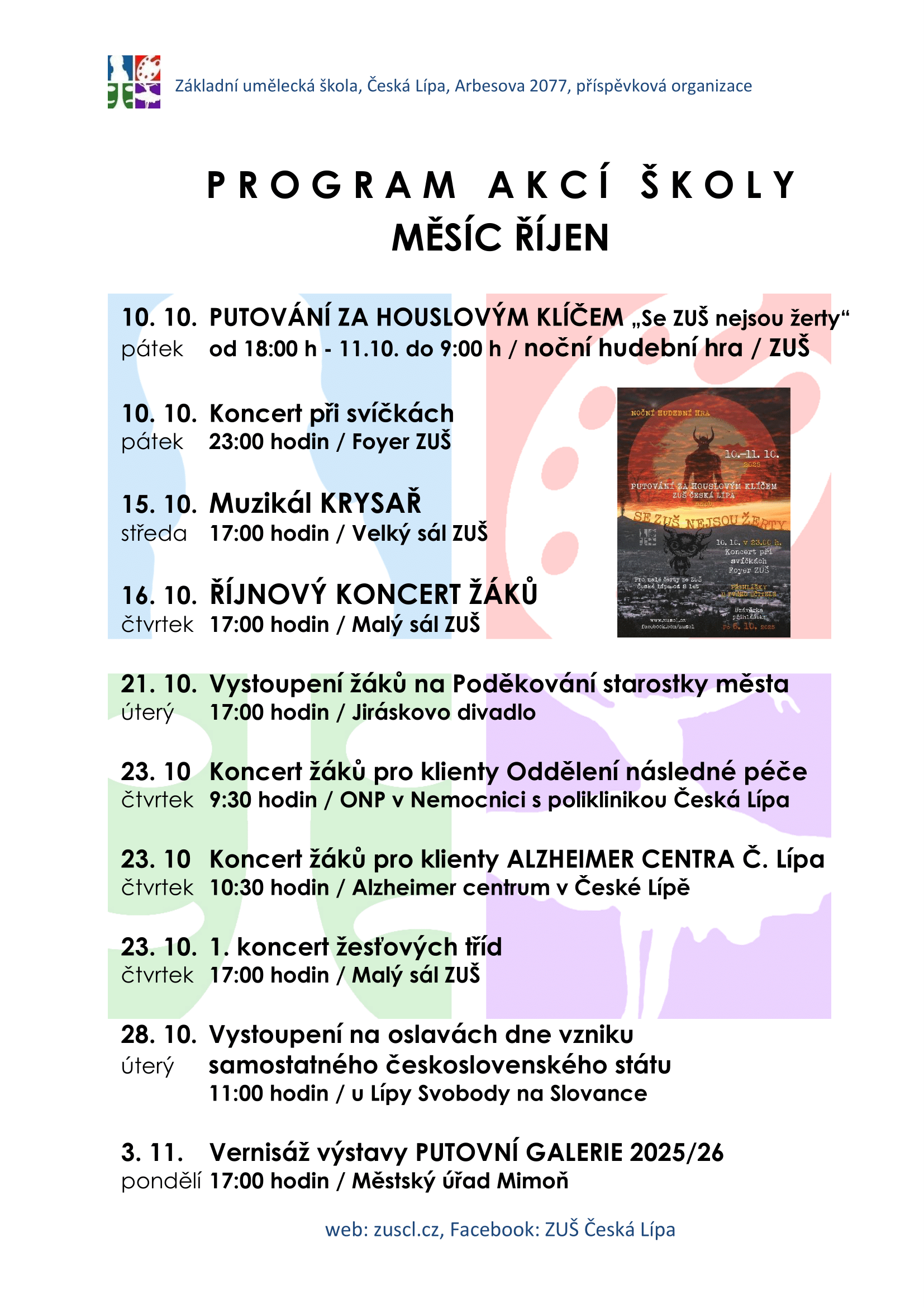 Přijďte zažít nezapomenutelný koncert s vynikajícím houslistou Romanem Patočkou, talenty ZUŠ, Jazzovou Farmou a Komorním symfonickým orchestrem. Celým večerem, který je součástí Libchavského hudebního podzimu, vás provede oblíbený moderátor Jiří Gottlieber. Buďte součástí výjimečného projektu Má to smysl!, který spojuje mladé talenty s profesionálními hudebníky. Koncert se uskuteční ve čtvrtek 6. listopadu od 19:00 v Jiráskově divadle. Vstupenky jsou již v prodeji - zajistěte si své místo včas! Vstupné: 100 Kč - vstupenky lze zakoupit zde.