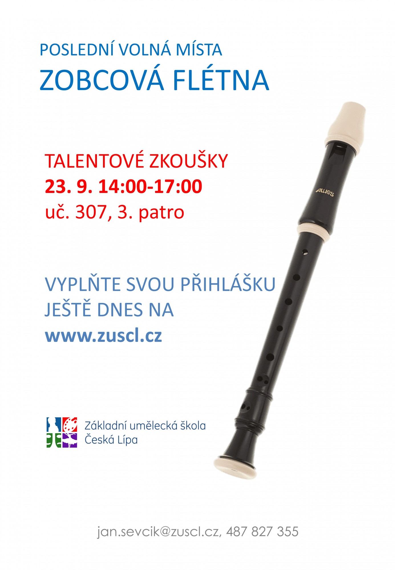 máte doma talentované dítě? Naše škola otevírá dveře těm, kteří chtějí objevovat svět houslí a flétny, zpívat ve sboru, rozvíjet se ve výtvarném oboru, zkusit literárně-dramatické umění nebo se vyjádřit tancem. Nové žáky přijímáme do konce září! Stačí vyplnit PŘIHLÁŠKU a my se vám ozveme! Talentové zkoušky pro hudební obor: 23. 9. | 14–17 hod | učebna 307, 3. patro. Pro více informací nás kontaktujte: tel. 732 576 575, e-mail: jan.sevcik@zuscl.cz. Těšíme se na vás a vaše děti!