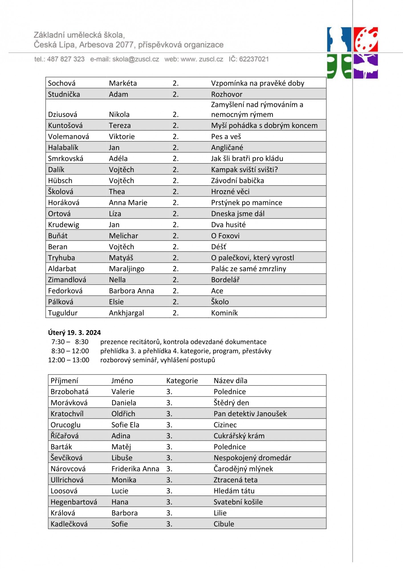 RECITAČNÍ PŘEHLÍDKA DĚTSKÝCH RECITÁTORŮ OKRESU ČESKÁ LÍPA 2024