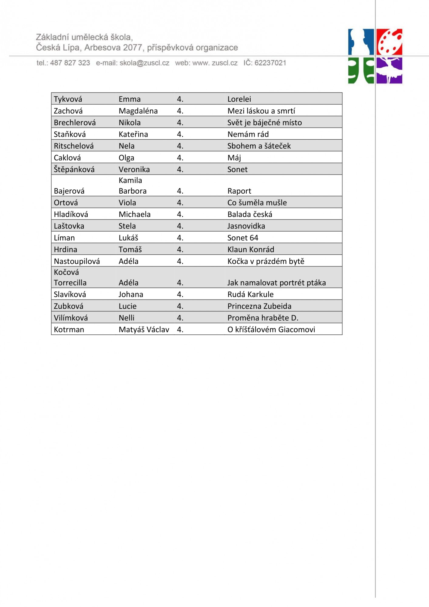 Místo konání: Základní umělecká škola Česká Lípa, Arbesova 2077, 470 01 Česká Lípa