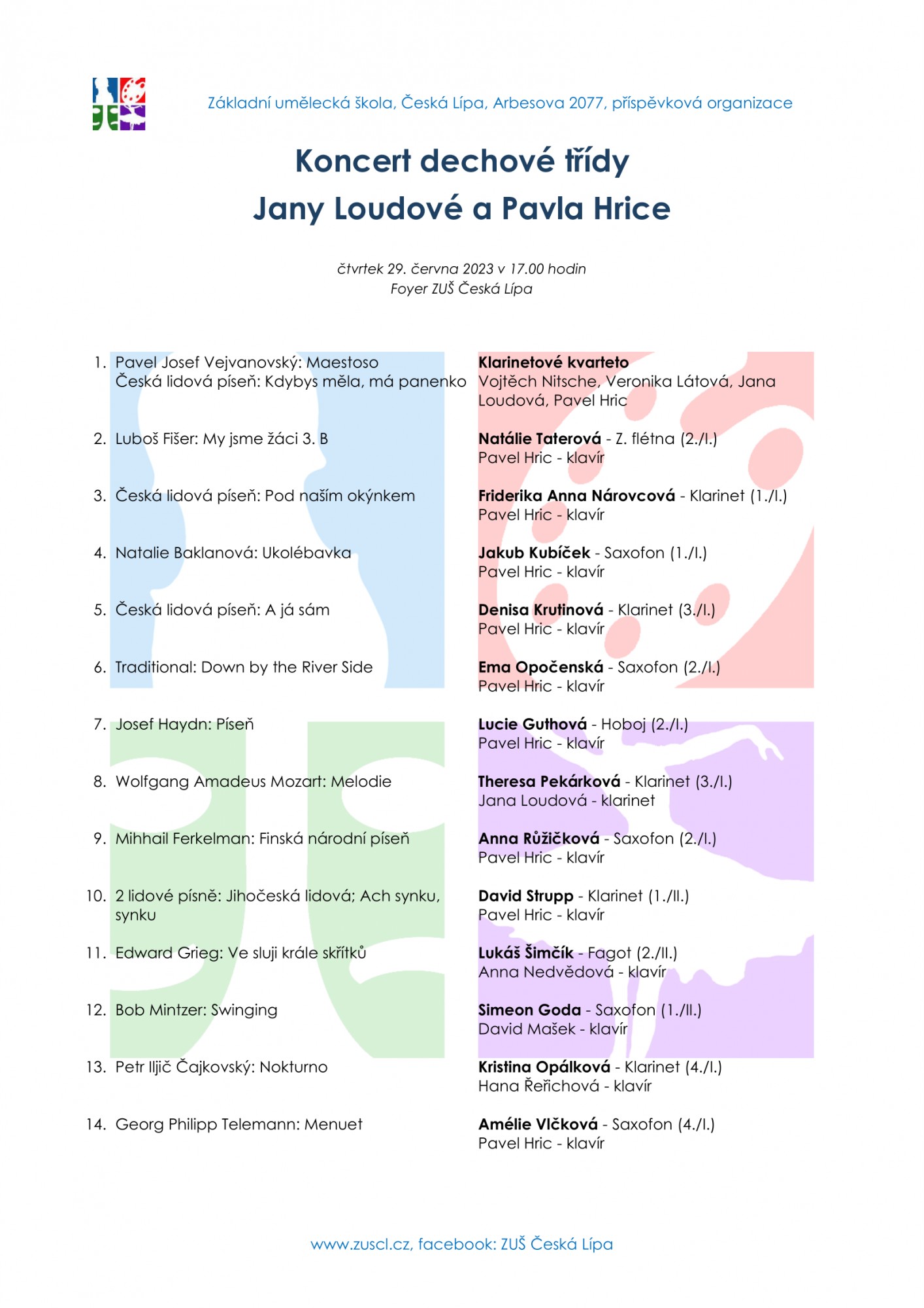 Koncert dechových tříd Jany Loudové a Pavla Hrice