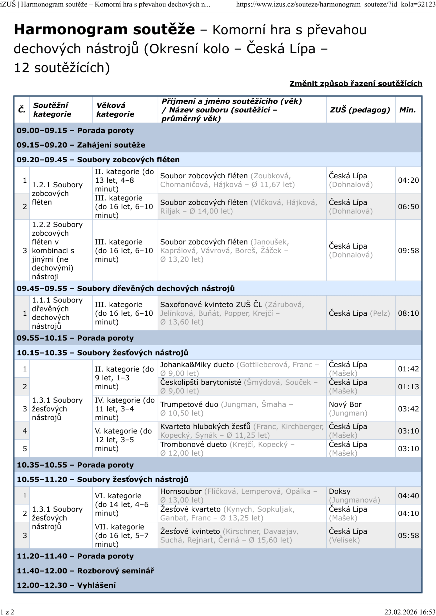 Ve středu 25. února od 9 hodin proběhne na Malém sále naší ZUŠ okresní kolo soutěže vyhlašované Uměleckou radou ZUŠ ČR s podporou Ministerstva školství, mládeže a tělovýchovy, a to v Komorní hře s převahou dechových nástrojů. Soutěže jsou rodičům a veřejnosti přístupné. O výsledcích vás budeme po konání informovat v novinkách.