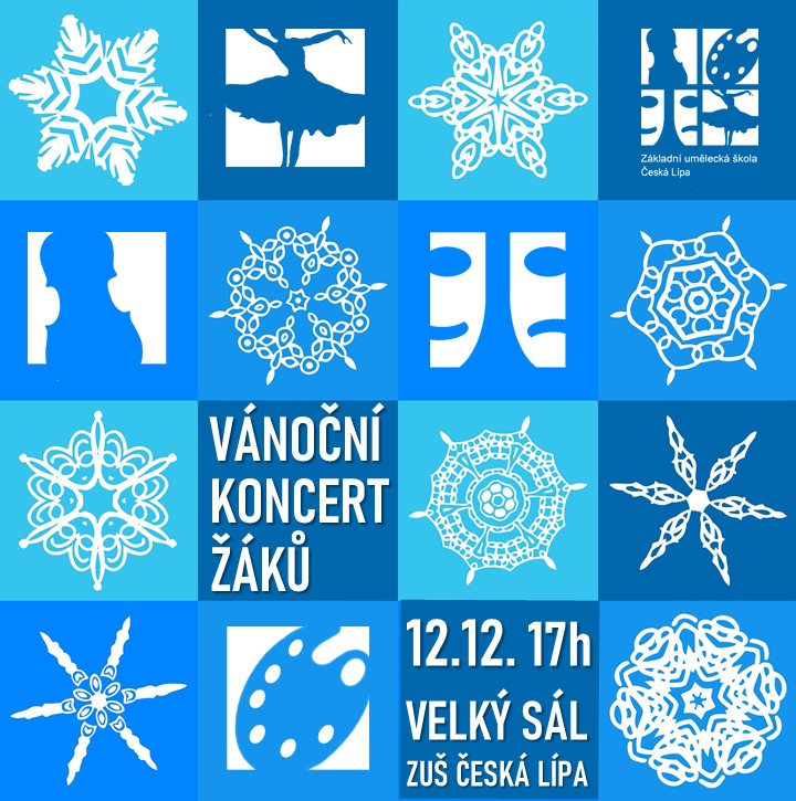 Pojďte s námi zapomenout na předvánoční shon a starosti na tradičním Vánočním koncertu žáků ve čtvrtek 12. prosince ve Velkém sále ZUŠ, kde je pro vás od 17 hodin připravena pestrá, nejen hudební nadílka. Těšit se můžete na velká hudební tělesa, komorní i sólová čísla. Přijďte se vánočně naladit a povzbudit vaše šikovné děti = naše nadané studenty :) Vstup zdarma. Program
