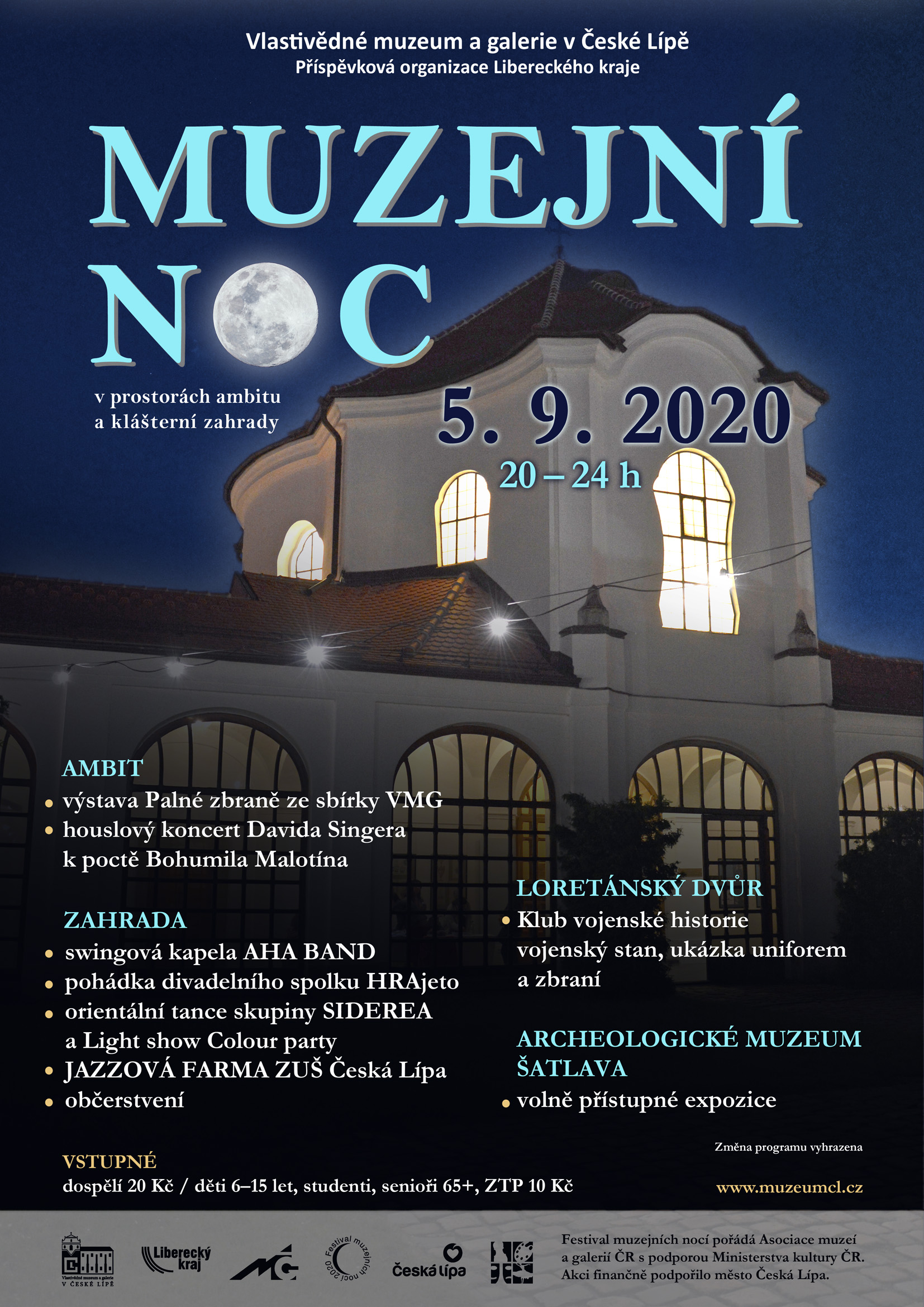 Muzejní noc, která měla proběhnout v červnu, byla přesunuta na sobotu 5. 9. od 20.00 do 24.00 hod. Muzejním večerem Vás budou tradičně provázet vystoupení našich žáků a pedagogů. Ve 21.00 se uskuteční v Biberově hudební síni houslový koncert p. uč. Davida Singera k poctě Bohumila Malotína, který vystřídají jazzové standardy v podání p. uč. Davida Maška na klavír a p. uč. Josefa Pelze na saxofon. V klášterní zahradě se můžete ve 22:30 hodin těšit na naši Jazzovou Farmu.