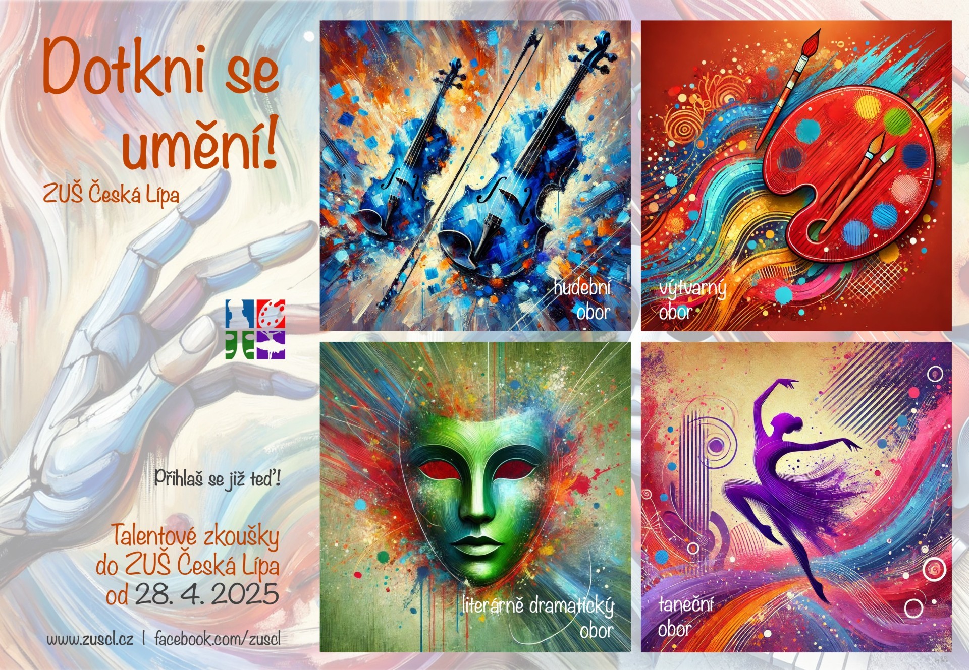 talentové zkoušky ke studiu v ZUŠ Česká Lípa budou v letošním roce probíhat od 28. 4. do 9. 5. 2025.