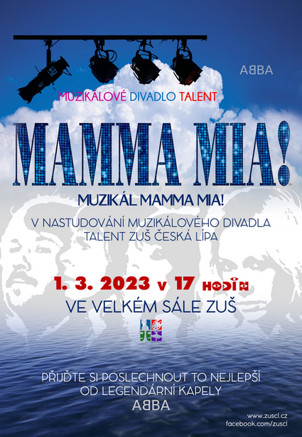 Dětský pěvecký sbor Talent z českolipské ZUŠ nastudoval muzikál "Mamma Mia!", který je založen na písních úspěšné švédské skupiny ABBA. Talent tento koncert naposledy zazpívá, zahraje a zatančí pro veřejnost na Velkém sále ve středu 1. března od 17 hodin, vstup zdarma.