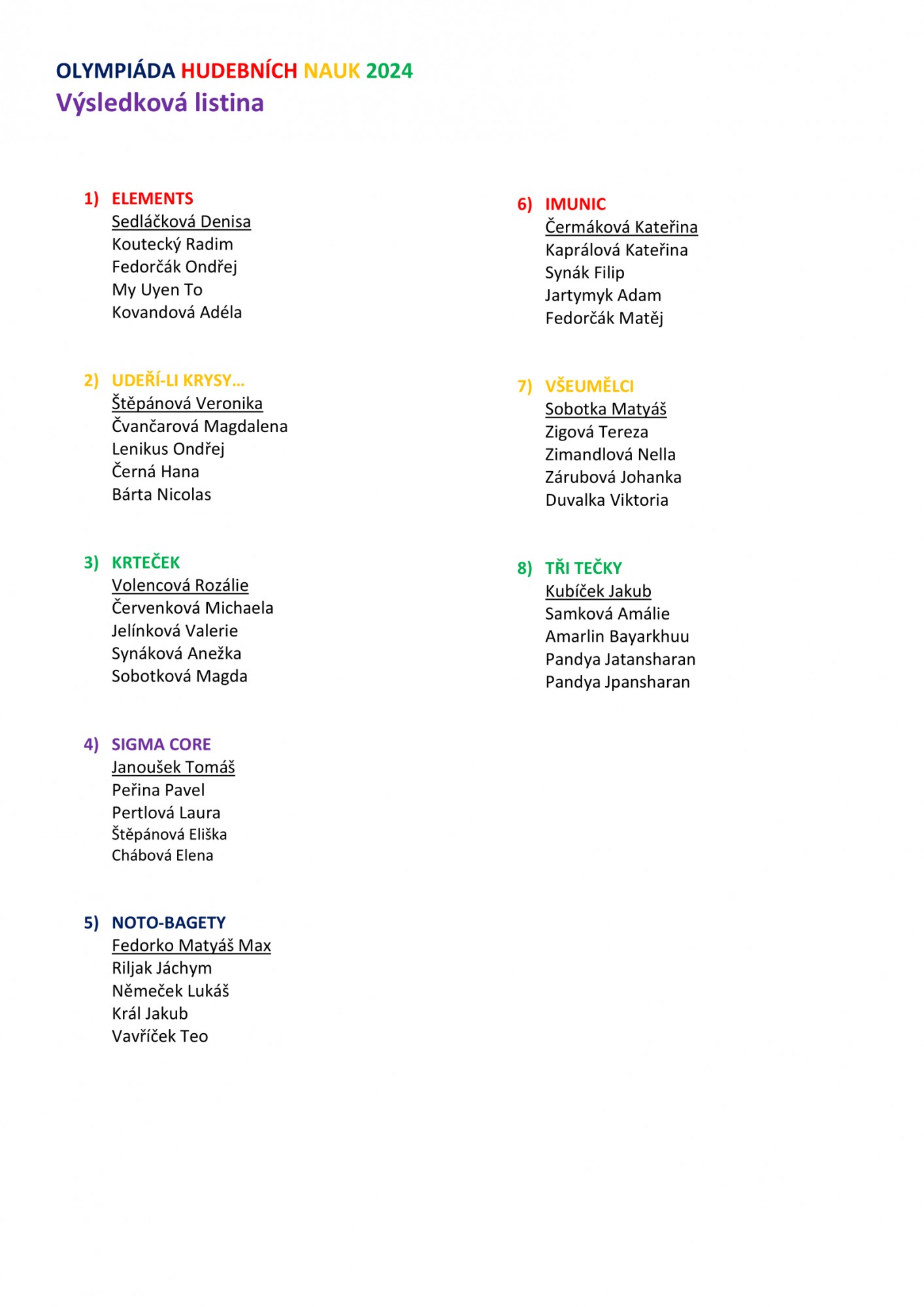 A je tu opět soutěžní klání družstev v hudební nauce "Olympiáda hudebních nauk 2024", které se koná v úterý 26. března! Přihlášky si vytiskněte zde či vyzvědněte u svých učitelů hudební nauky a vyplněné odevzdejte paní uč. Petře Sobotkové.