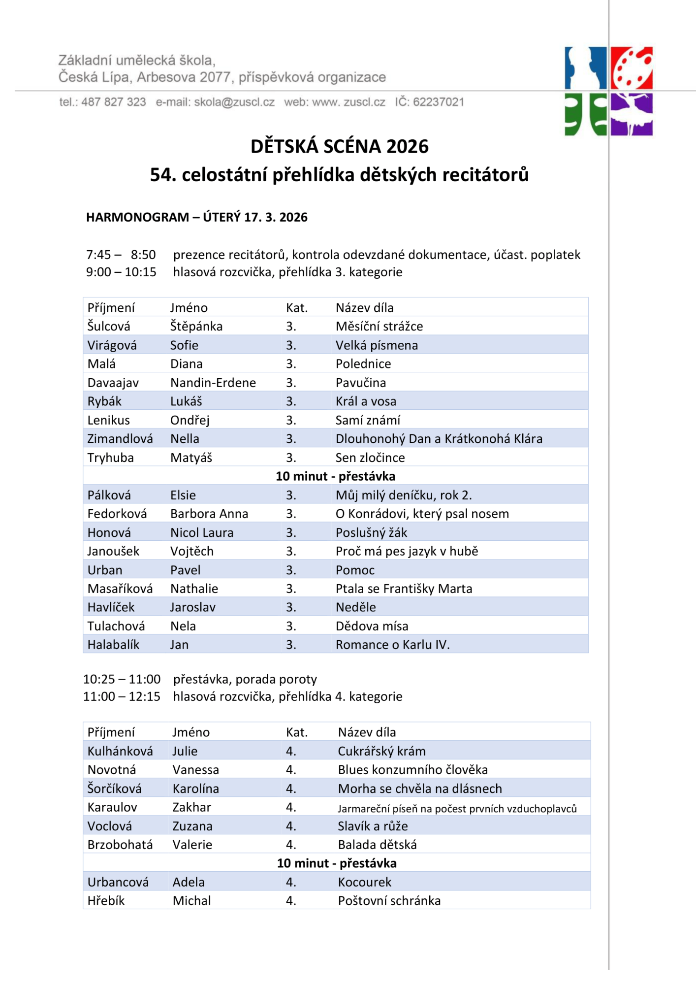 RECITAČNÍ PŘEHLÍDKA DĚTSKÝCH RECITÁTORŮ OKRESU ČESKÁ LÍPA 2026
