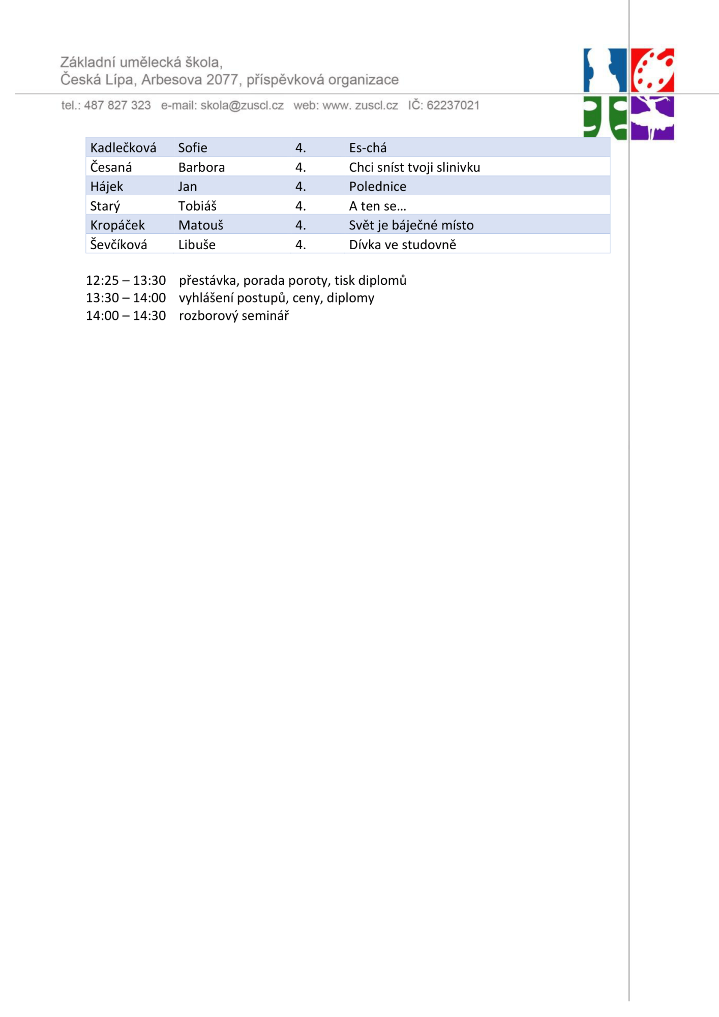 Místo konání: Základní umělecká škola Česká Lípa, Arbesova 2077, 470 01 Česká Lípa
