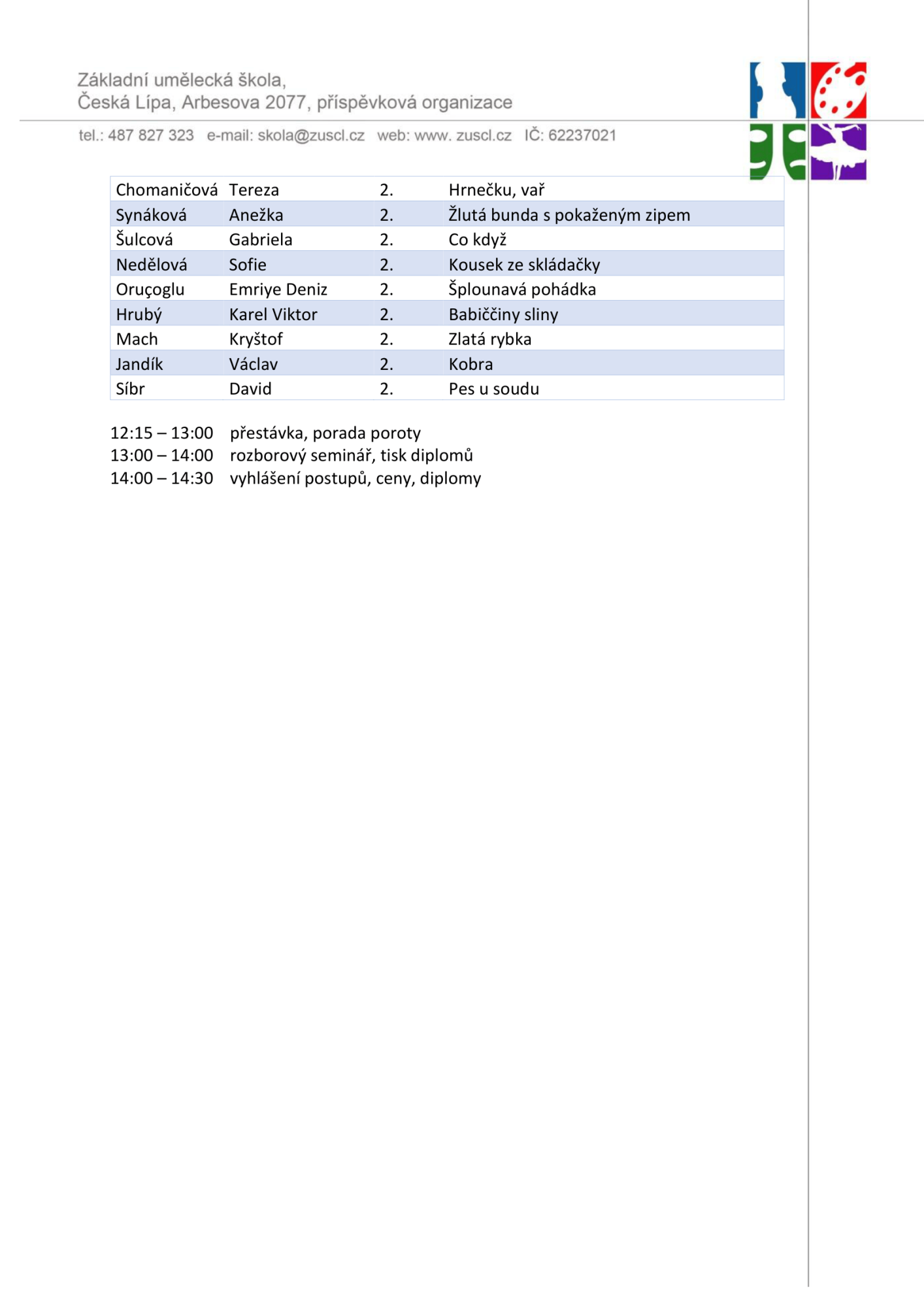 Místo konání: Základní umělecká škola Česká Lípa, Arbesova 2077, 470 01 Česká Lípa